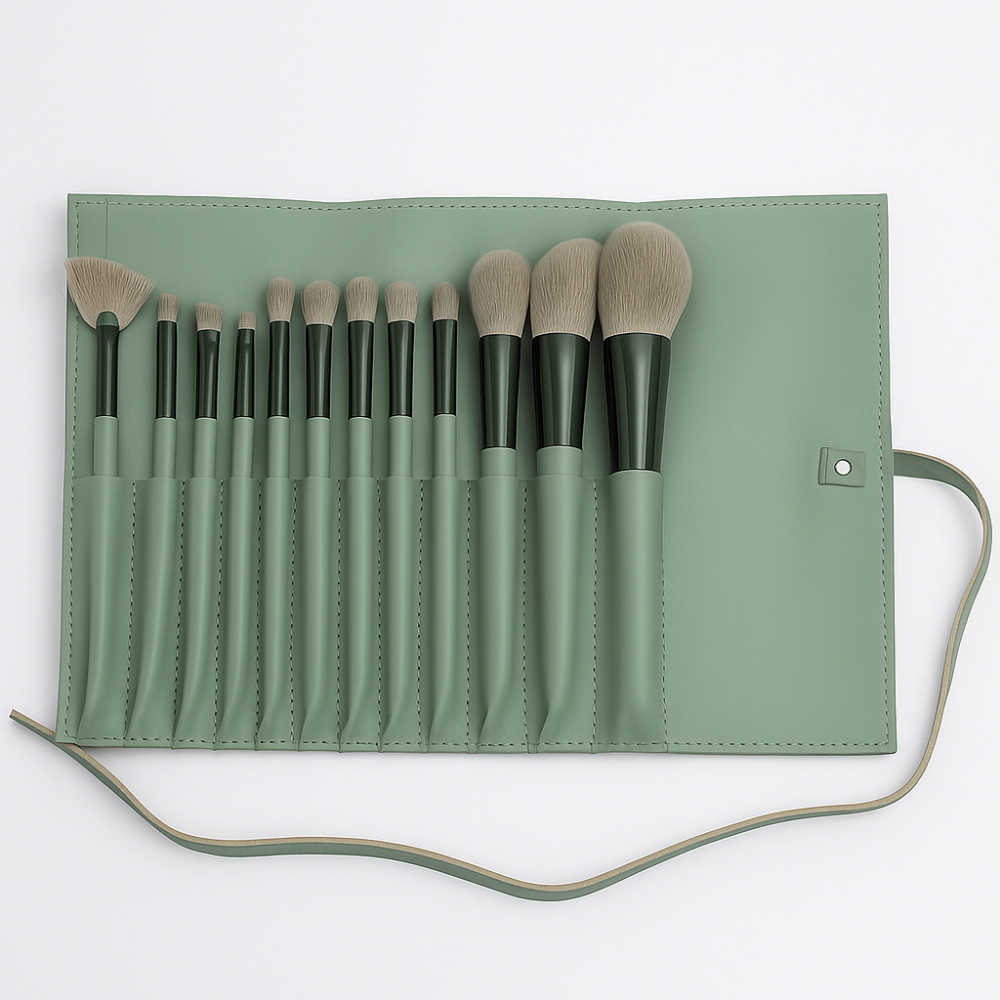 احصلي على تجربة مكياج متكاملة مع طقم فرش المكياج المكون من 12 قطعة خشبية أنيقة، مصممة لتغطية جميع احتياجاتك من توزيع الأساس إلى دمج الظلال ورسم التفاصيل بدقة. يأتي مع حافظة لف عملية وعصرية بلون أخضر زيتي لتنظيم الفرش وحمايتها أثناء السفر أو التخزين.