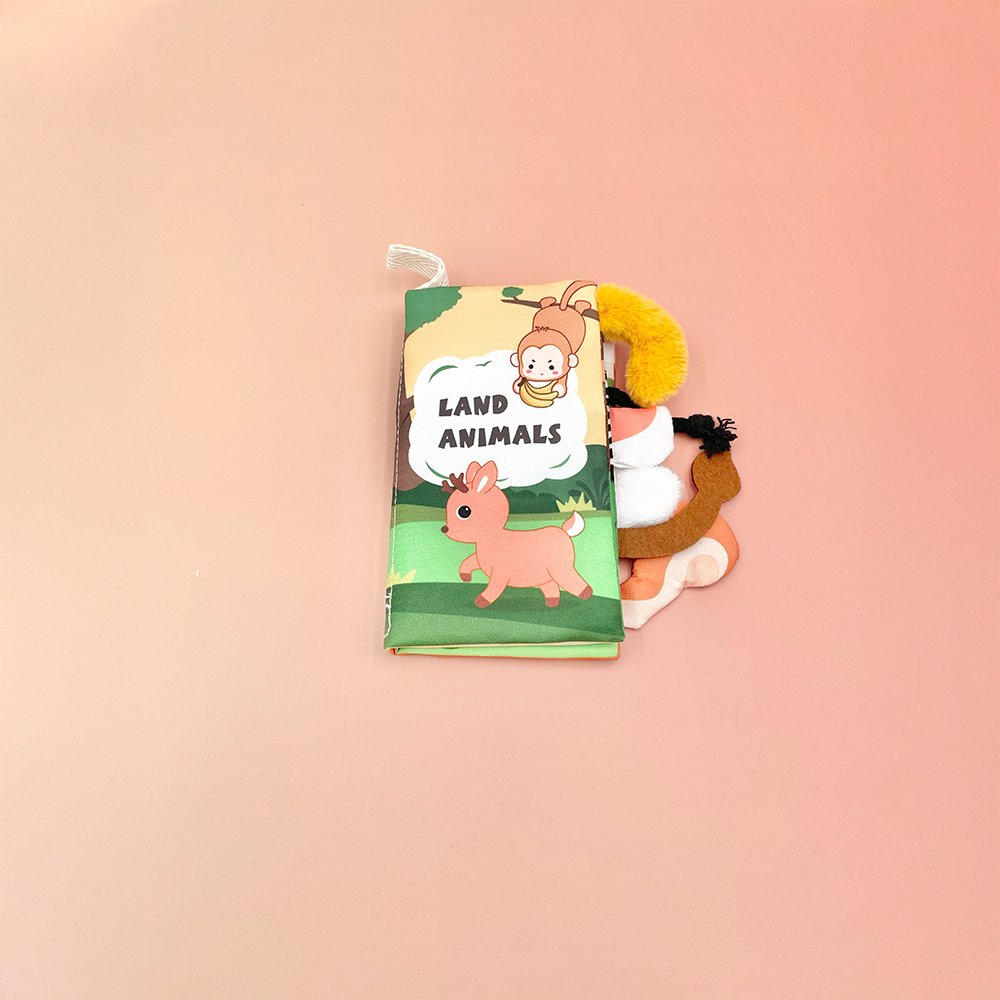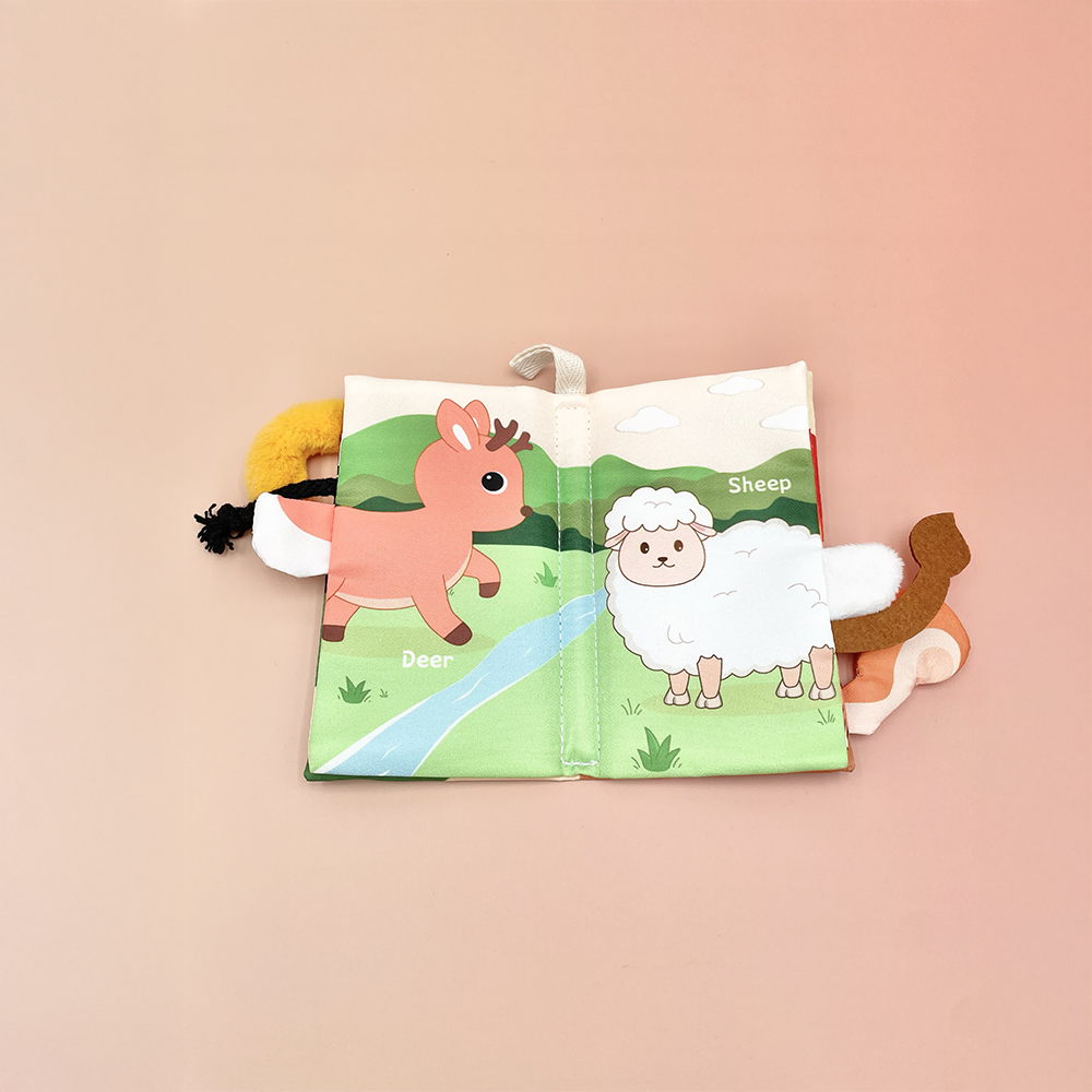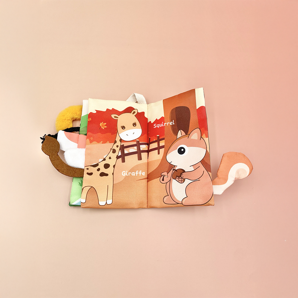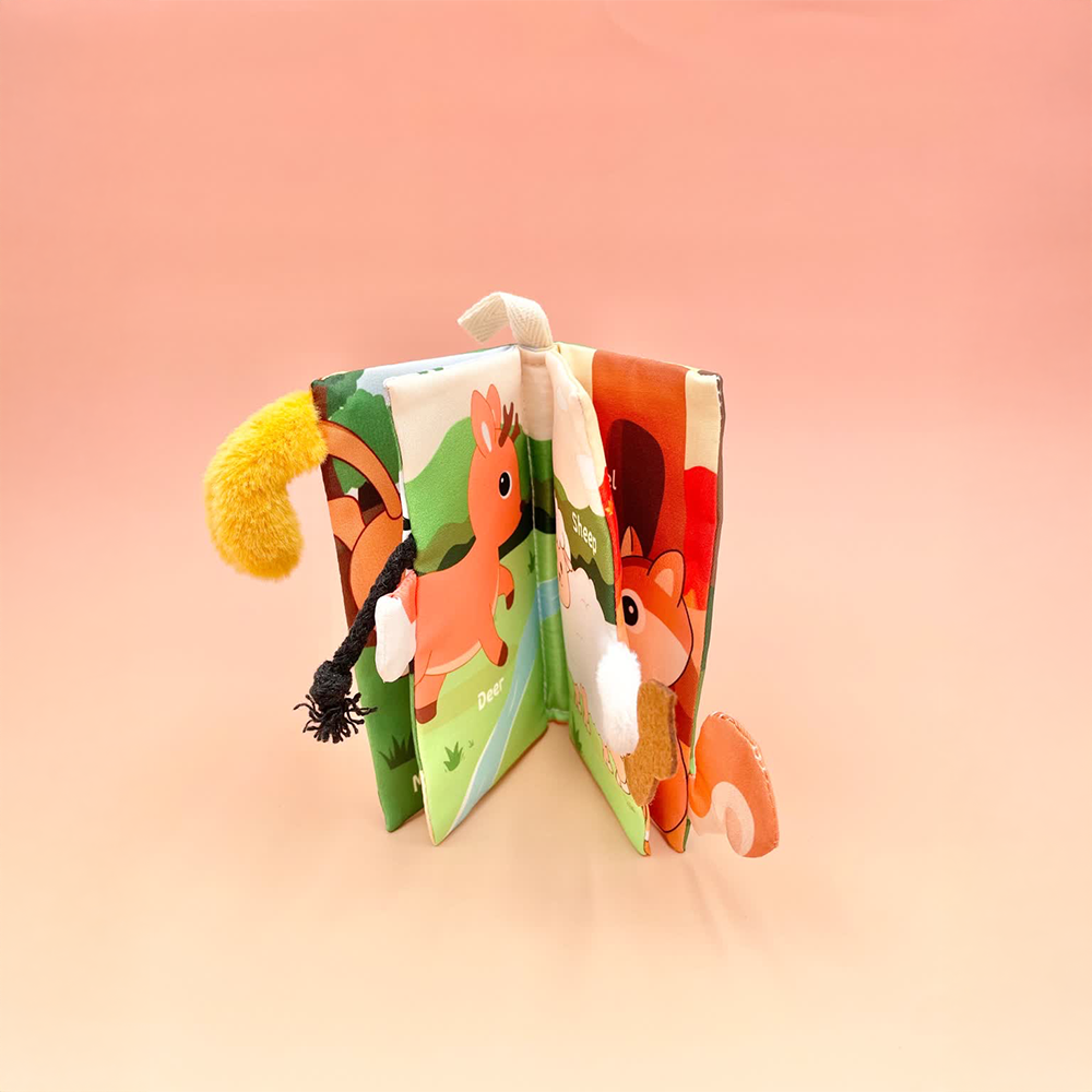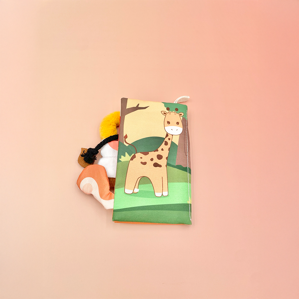 كتاب قماشي ناعم وتفاعلي مصمم للرضع، يضم رسومات ملونة لحيوانات لطيفة مثل الزرافة، القرد، الغزال، الحصان، وغيرها، مع ذيول بارزة لكل حيوان لتجربة حسية ممتعة. يساعد الطفل على تنمية الإدراك البصري واللمسي بطريقة آمنة ومسلية. تصميمه خفيف، عملي، وقابل للغسل، مثالي في كل مكان.